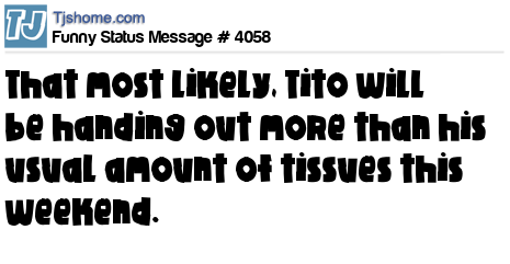 X says that most likely, Tito will be handing out more than his usual amount of tissues this weekend.