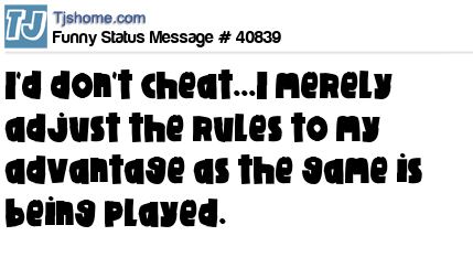 X I'd don't cheat...I merely adjust the rules to my advantage as the game is being played.