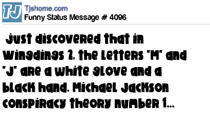 X just discovered that in Wingdings 2, the letters "M" and "J" are a white glove and a black hand. Michael Jackson conspiracy theory number 1...