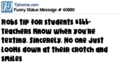 - # 59649 Dear students, I know when you`re texting. Seriously, no one just looks down at their crotch and smiles. Sincerely, teacher.