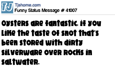 X  Oysters are fantastic, if you like the taste of snot that's been stored with dirty silverware over rocks in saltwater.