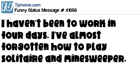 X I haven't been to work in four days. I've almost forgotten how to play solitaire and minesweeper.