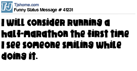 X I will consider running a half-marathon the first time I see someone smiling while doing it.