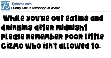 X While you're out eating and drinking after midnight please remember poor little Gizmo who isn't allowed to.