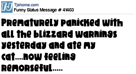 X Prematurely panicked with all the blizzard warnings yesterday and ate my cat....now feeling remorseful.....