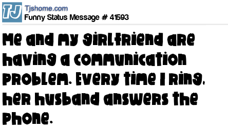 X Me and my girlfriend are having a communication problem. Every time I ring, her husband answers the phone.