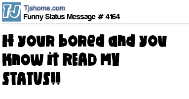 - # 3430 loves to read status updates like "I'm really bored" and "I'm at work right now". Good stuff. Keep me posted...thanks!