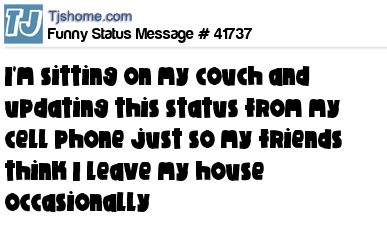 X I'm sitting on my couch and updating this status from my cell phone just so my friends think I leave my house occasionally