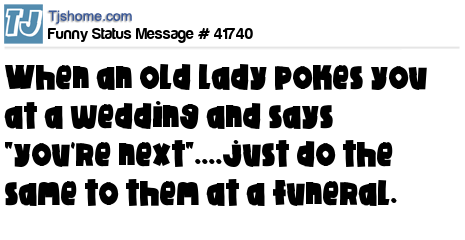 X When an old lady pokes you at a wedding and says "you're next"....just do the same to them at a funeral.