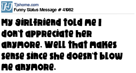 X My girlfriend told me I don't appreciate her anymore. Well that makes sense since she doesn't blow me anymore.