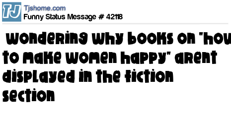 - # 13144 wondering why books on "How to make women happy" aren't displayed in the 'FICTION' section