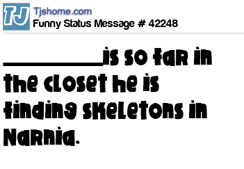 X ___________is so far in the closet he is finding skeletons in Narnia.