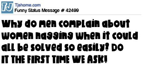 X Why do men complain about women nagging when it could all be solved so easily? DO IT THE FIRST TIME WE ASK!