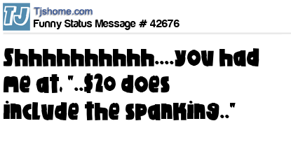 X Shhhhhhhhhh....you had me at, "..$20 does include the spanking.."