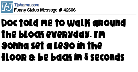 X says doc told me to walk around the block everyday. I'm gonna set a lego in the floor & be back in 5 seconds