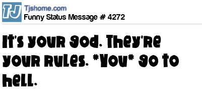 X says It's your god. They're your rules. *You* go to hell.