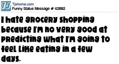 - # 42865 I hate grocery shopping because I'm no very good at predicting what I'm going to feel like eating in a few days.