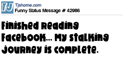 - # 12016 was told recently that it really doesn't constitute stalking if you inform the other party. I like that. So, Greater Facebook Community, I'm probably stalking you.