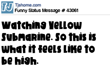 X is watching Yellow Submarine. So this is what it feels like to be high.
