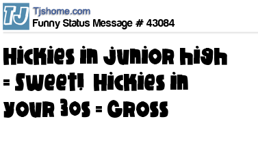 X Hickies in junior high = Sweet! Hickies in your 30s = Gross