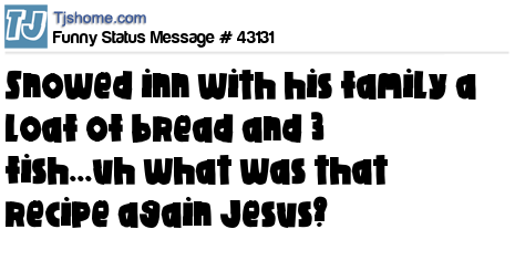 X is snowed inn with his family a loaf of bread and 3 fish...uh what was that recipe again Jesus?