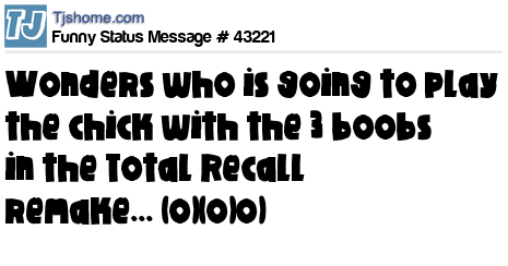 X  wonders who is going to play the chick with the 3 boobs in the Total Recall remake... (o)(o)o)