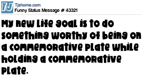 X is My new life goal is to do something worthy of being on a commemorative plate while holding a commemorative plate.