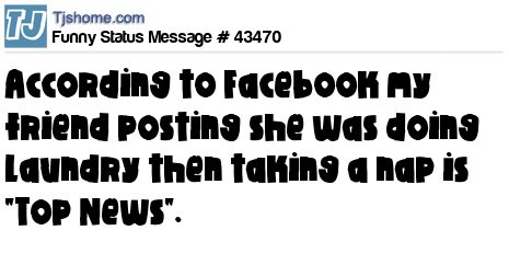 X says According to Facebook my friend posting she was doing laundry then taking a nap is "Top News".