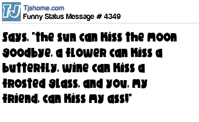 - # 110459 the sun can kiss the moon goodbye, a flower can kiss a butterfly, wine can kiss a frosted glass and you my friend can kiss my arse