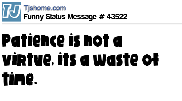 - # 38789 Why is "patience" a virtue? Why can't "hurry the fuck up" be a virtue?