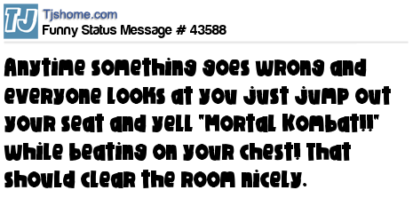 X says Anytime something goes wrong and everyone looks at you just jump out your seat and yell "Mortal Kombat!!" while beating on your chest! That should clear the room nicely.