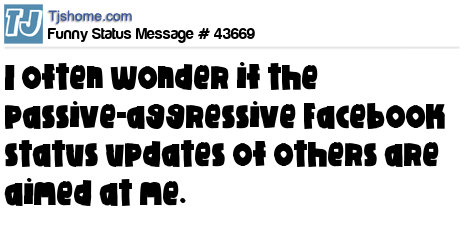 X I often wonder if the passive-aggressive Facebook status updates of others are aimed at me.