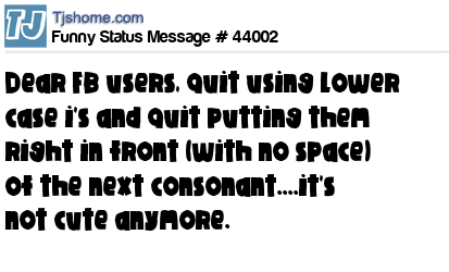 X says Dear FB users, quit using lower case i's and quit putting them right in front (with no space) of the next consonant....it's not cute anymore.