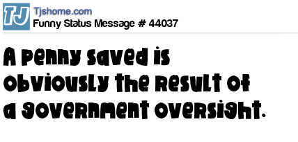 - # 32085 A penny saved is no longer a penny earned. It is a government oversight!!!