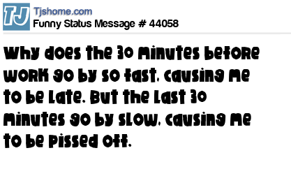 X is Why does the 30 minutes before work go by so fast, causing me to be late. But the last 30 minutes go by slow, causing me to be pissed off.