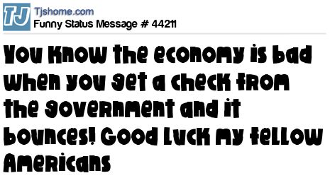X says you know the economy is bad when you get a check from the government and it bounces! Good luck my fellow Americans