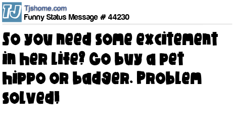 X So you need some excitement in her life? Go buy a pet hippo or badger. Problem solved!