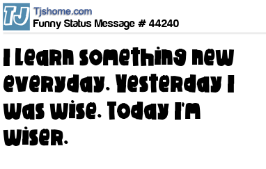 X I learn something new everyday. Yesterday I was wise. Today I'm wiser.