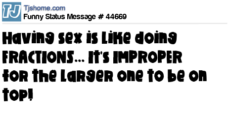 - # 67090 Having sex is like doing FRACTIONS... It's IMPROPER for the larger one to be on top