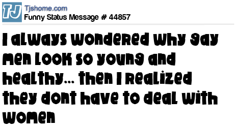 X is i always wondered why gay men look so young and healthy... then I realized they dont have to deal with women