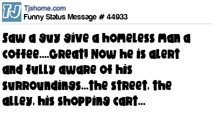 X saw a guy give a homeless man a coffee....Great! Now he is alert and fully aware of his surroundings...the street, the alley, his shopping cart...