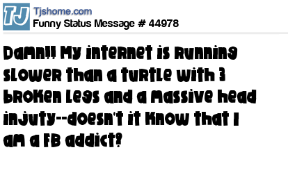 X says Damn!! My internet is running slower than a turtle with 3 broken legs and a massive head injuty--doesn't it know that I am a FB addict?