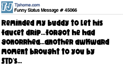 X reminded my buddy to let his faucet drip...forgot he had gonorrhea...another awkward moment brought to you by STD's...