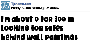 X says I'm about 0 for 300 in looking for safes behind wall paintings