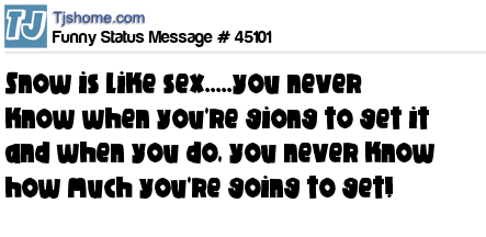 X says snow is like sex.....you never know when you're giong to get it and when you do, you never know how much you're going to get!