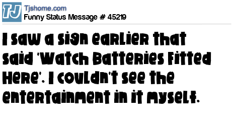 X I saw a sign earlier that said 'Watch Batteries Fitted Here'. I couldn't see the entertainment in it myself.