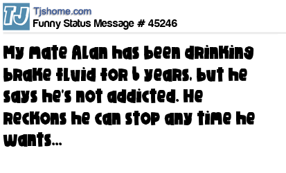 - # 32673 I may be addicted to brake fluid but I can stop at any time.