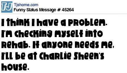 X is I think I have a problem. I'm checking myself into rehab. If anyone needs me, I'll be at Charlie Sheen's house.