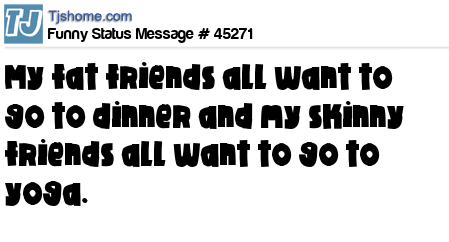 X My fat friends all want to go to dinner and my skinny friends all want to go to yoga.