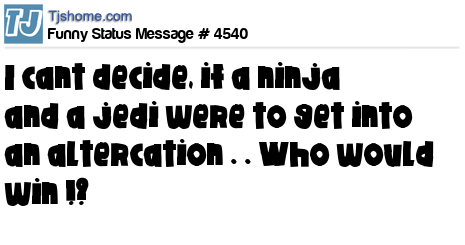 X I cant decide, if a ninja and a jedi were to get into an altercation . . Who would win !?